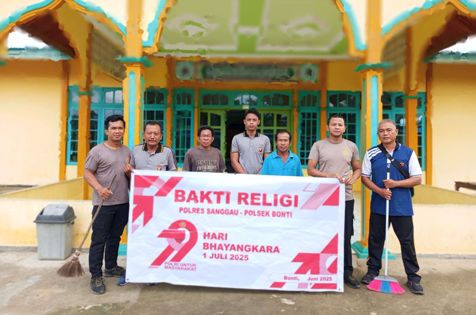 Sanggau, Polda Kalbar – Menyambut Hari Bhayangkara ke-79, Polsek Bonti melaksanakan kegiatan Bakti Religi sebagai bentuk pengabdian kepada masyarakat. Kegiatan yang digelar pada Jumat (20/6) pukul 08.30 WIB ini berlangsung di Masjid Besar Al-A’raaf, Jalan Kiai Martalaya No. 1, Dusun Bonti Selatan, Desa Bonti, Kecamatan Bonti, Kabupaten Sanggau.